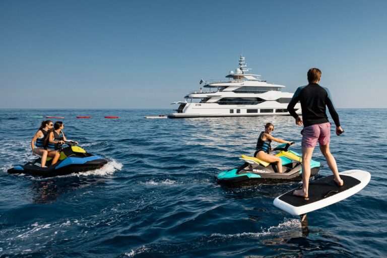 This tri-deck yacht is designed for the ultimate private getaway, offering six well appointed cabins without compromising space or comfort, including a master suite on the main deck. With generous outdoor entertainment areas, a Jacuzzi on the sundeck, and a full selection of water toys, M/Y OLIVIA is the perfect blend of luxury and versatility for charter guests seeking an elevated experience at sea.