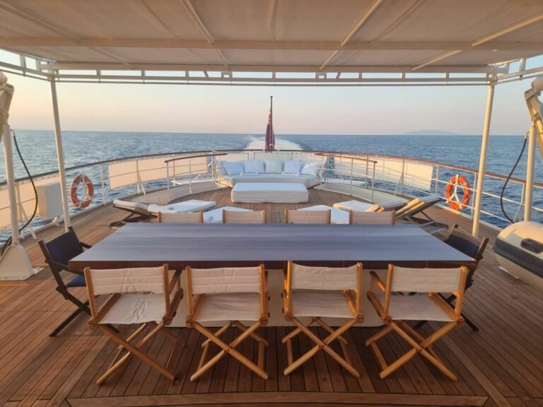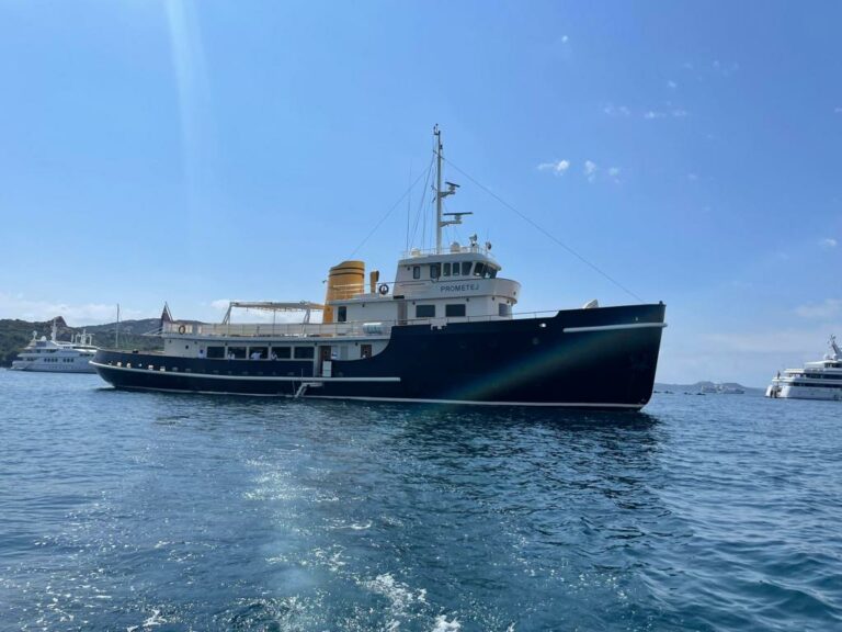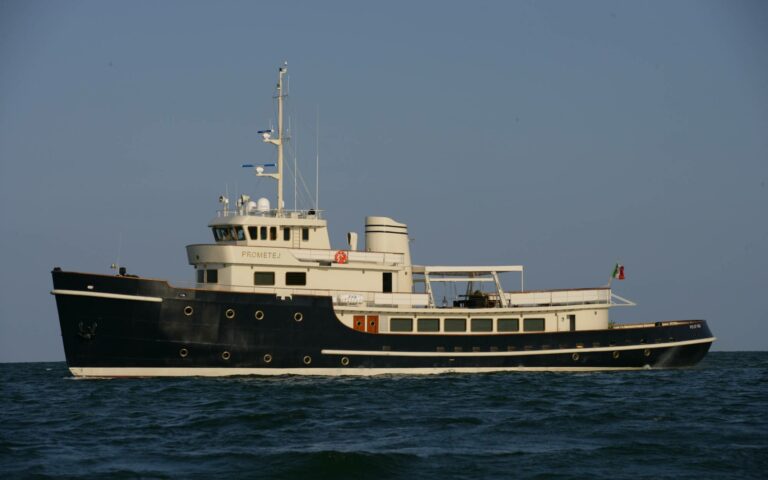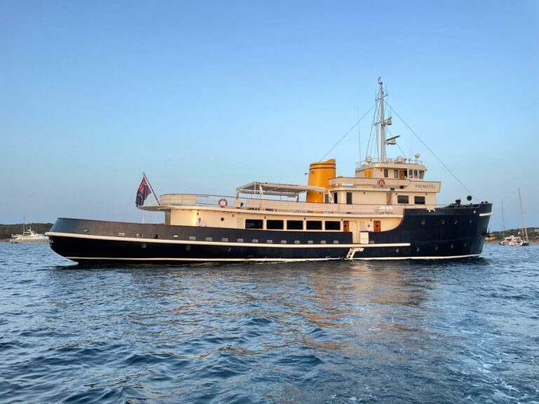 Built in 1957 as an ice-breaker, PROMETEJ underwent a conversion to a luxury yacht in 2004. A stunning refurbishment of her interiors, completed in 2023, has created a harmonious and classic ambience that carries throughout her spacious lounge and dining areas and into the 7 luxury appointed cabins.