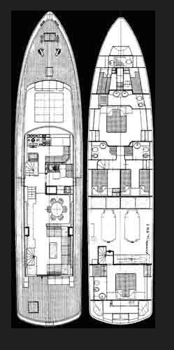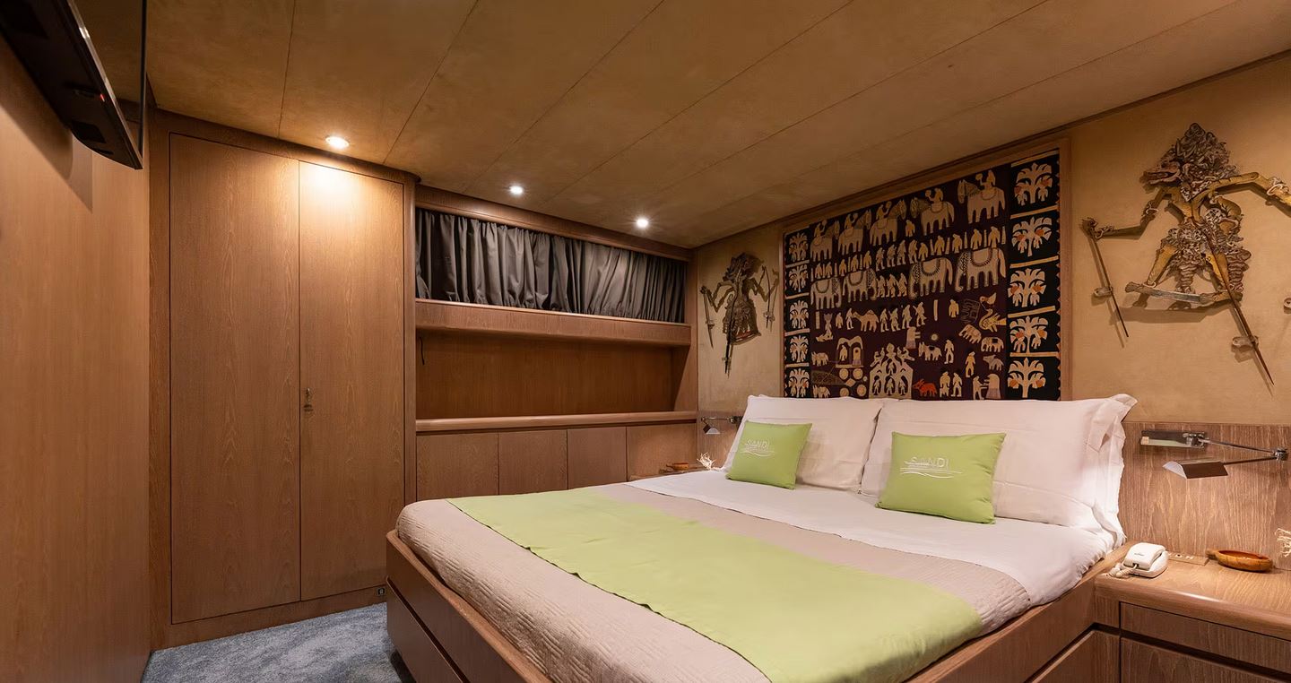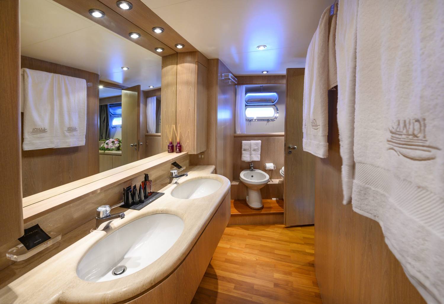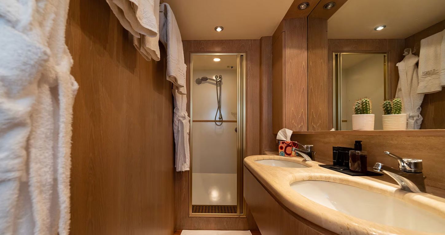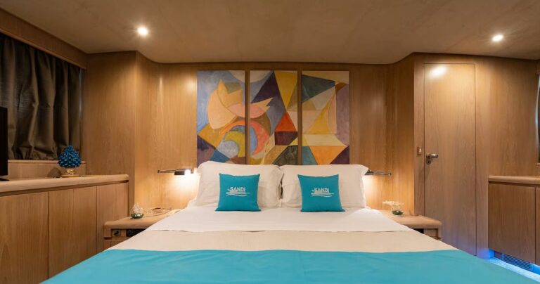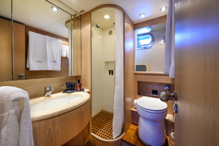 On the lower deck, the yacht accommodates up to 8 guests in 4 cabins: