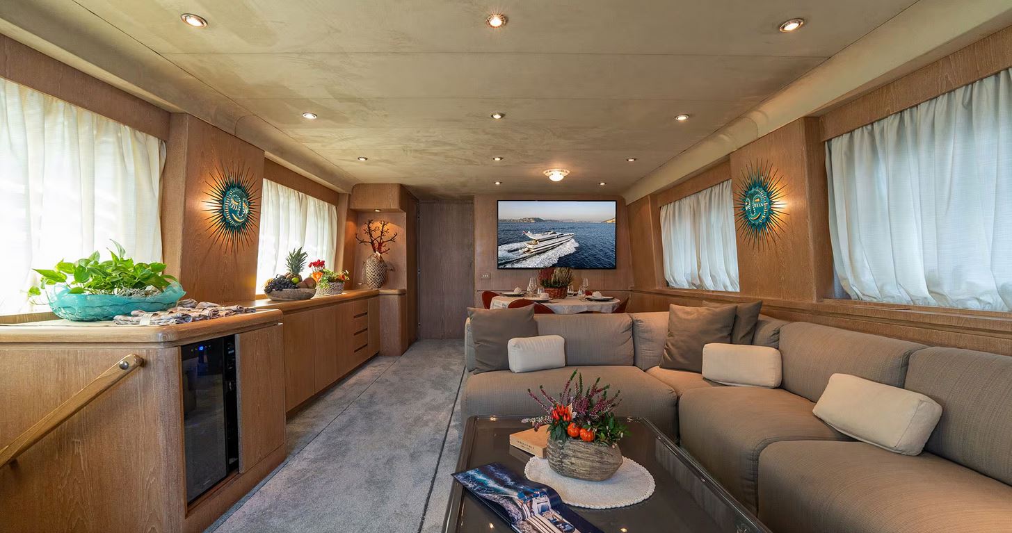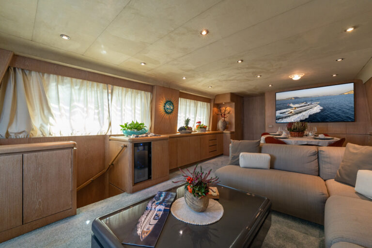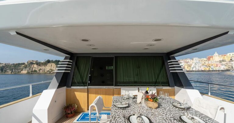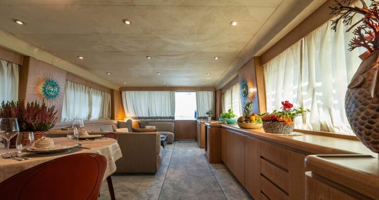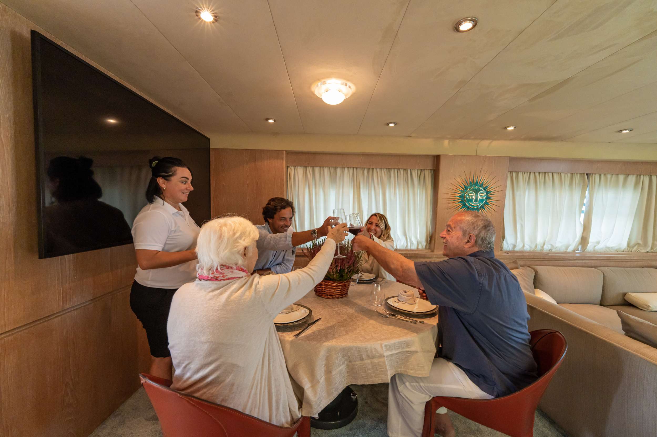 The crew, composed of a captain, first Officer, a hostess, and a steward, is highly professional and attentive, offering guests gourmet cuisine, impeccable service, and a truly unforgettable charter experience.