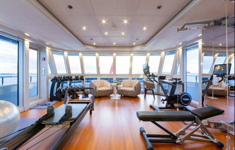 At 499 GT, BRAVADO boasts spacious and modern interior volumes, elegantly designed by Bizzozero/Cassina. The main salon is ideal for socializing, featuring a lounging area and a separate formal dining room, while large windows offer panoramic ocean views. She can accommodate up to 12 guests across six staterooms, including a spectacular full-beam Master Suite on the bridge deck, complete with a private 25m² (269sqf²) gym. A full-beam VIP stateroom is located on the main deck, and two double staterooms, and two twin staterooms on the lower deck.