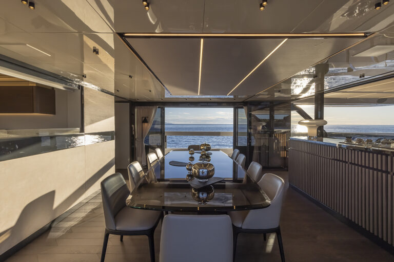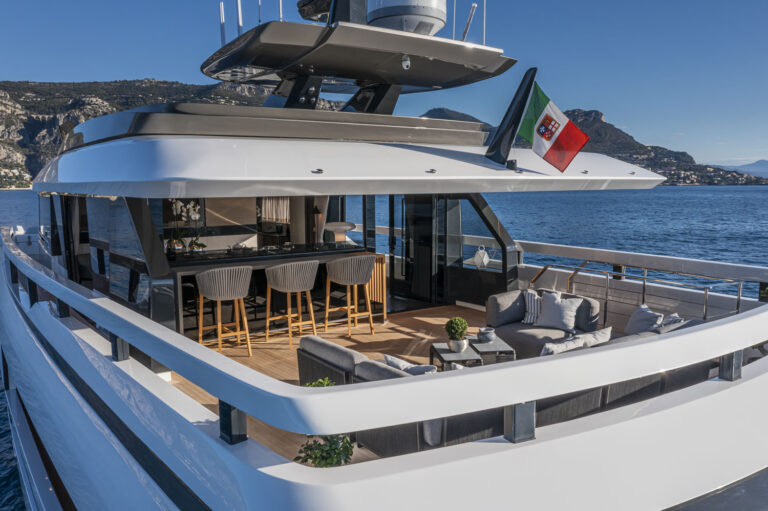 She was delivered in August 2021 and her concept was to further raise the standards for yachts under 100 feet in length, especially in terms of usable space, comfort, volumes, liveability on board, reduced fuel consumption and long-range cruises.
