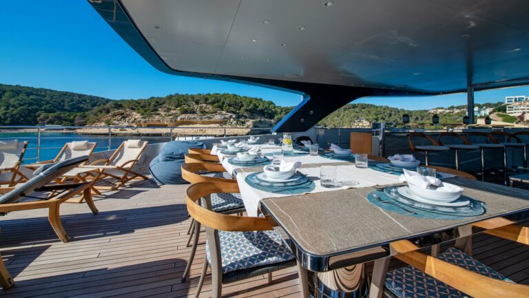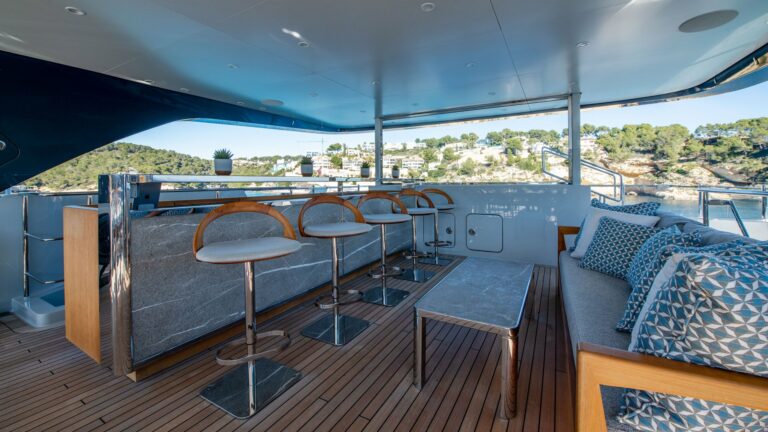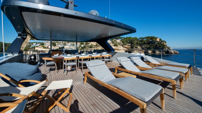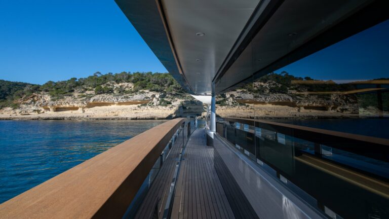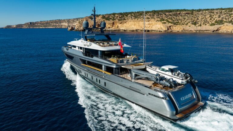 GLOBAS has a high autonomy and seaworthiness superior to that of  similar tonnage superyachts, but with limited draft that guarantees navigation near the coast with low consumption. Furthermore, its length makes it more agile in maneuvers allowing easy access in small bays, ports and marinas. Hydraulic stabilisers and an extra keel section give her stability and handling in any environment.