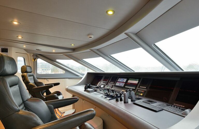 Built with a aluminium hull and aluminium superstructure, with teak decks, she benefits from a semi-displacement hull to provide exceptional seakeeping and impressive speeds. Powered by twin diesel MTU (16V4000 M90) 16-cylinder 3,700hp engines running at 2100rpm, she comfortably cruises at 20 knots, reaches a maximum speed of 25 knots with a range of up to 3,400 nautical miles from her 68,800 litre fuel tanks at 20 knots. Her water tanks store around 16,600 Litres of fresh water. She was built to ABS (American Bureau of Shipping) ✠A1, Yachting Service, AMS classification society rules.