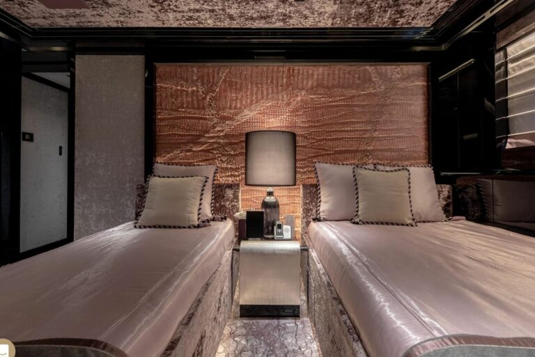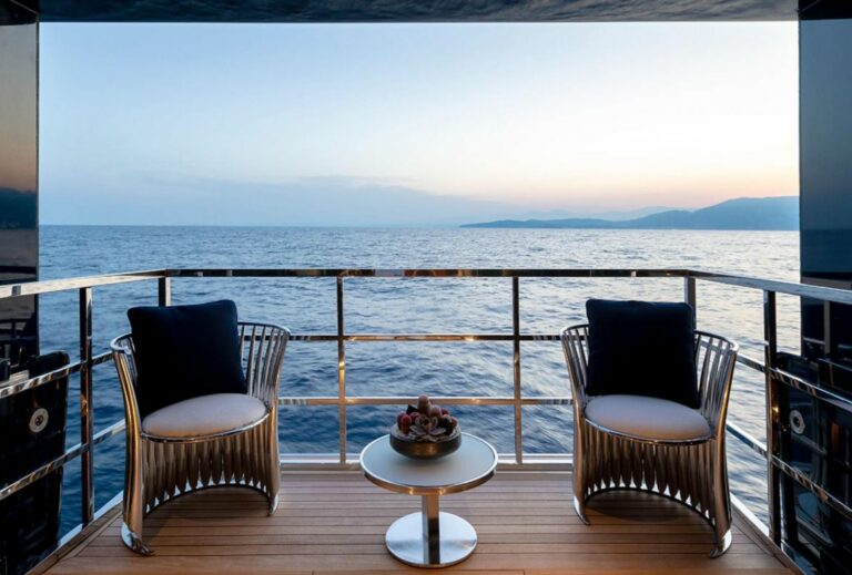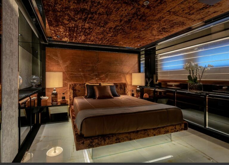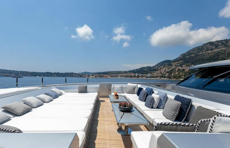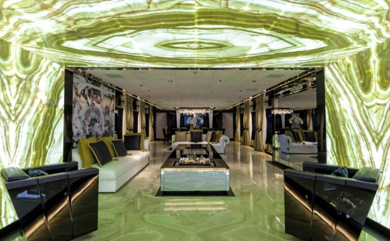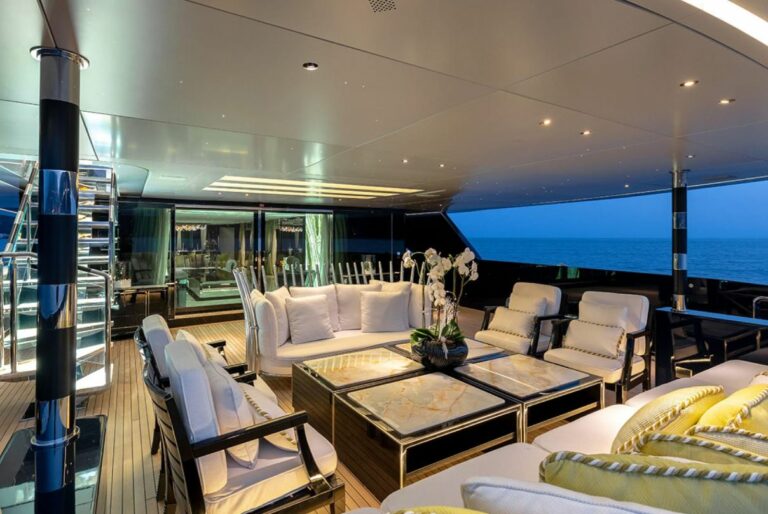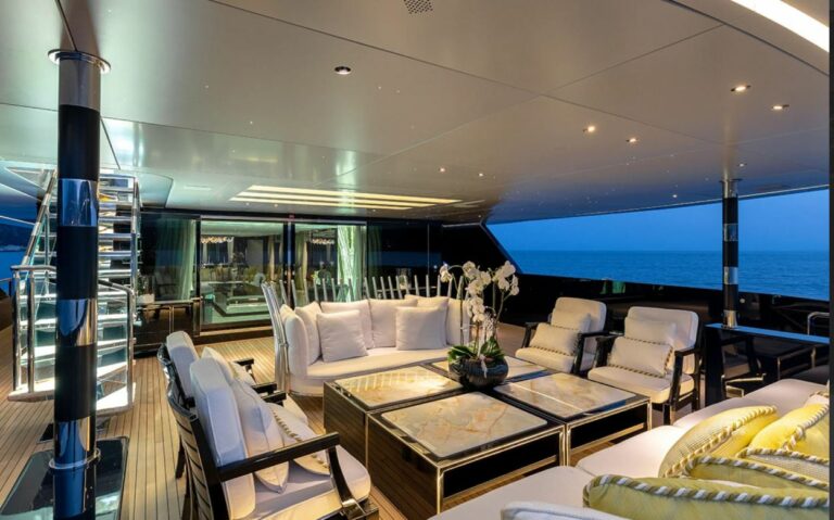 Her interior accommodation and generous living spaces are arranged over three decks, all linked by a stunning staircase with back-lit onyx which features both throughout her interior and exterior . Benefitting from large skylights and windows that allow for a great flow of natural light throughout.