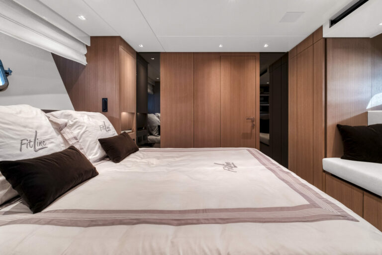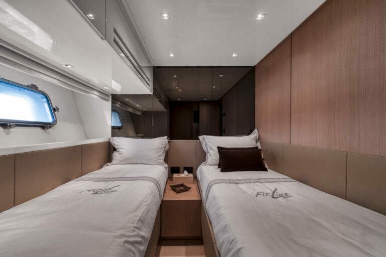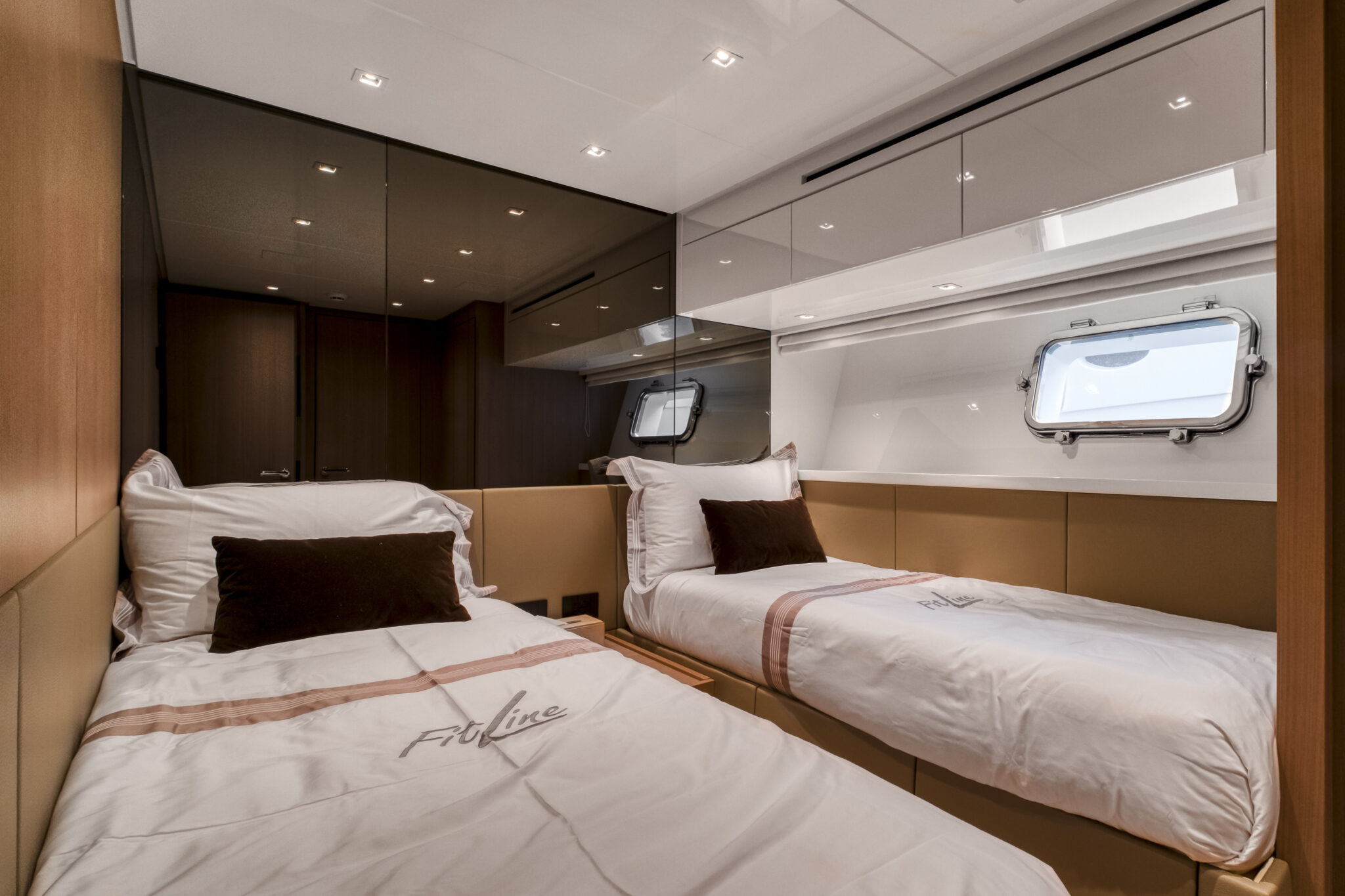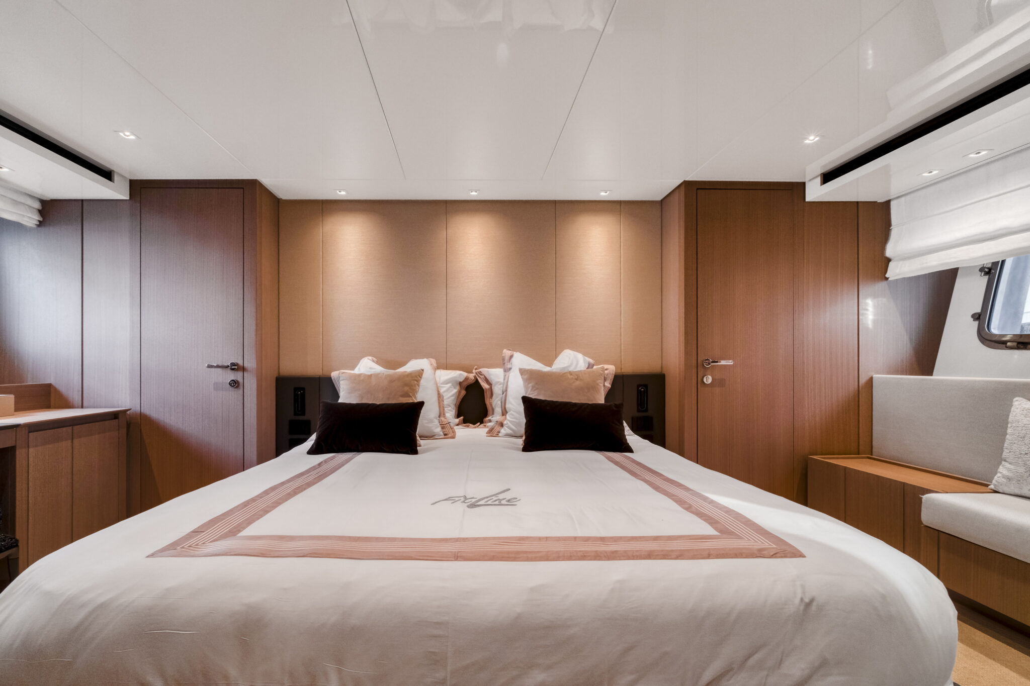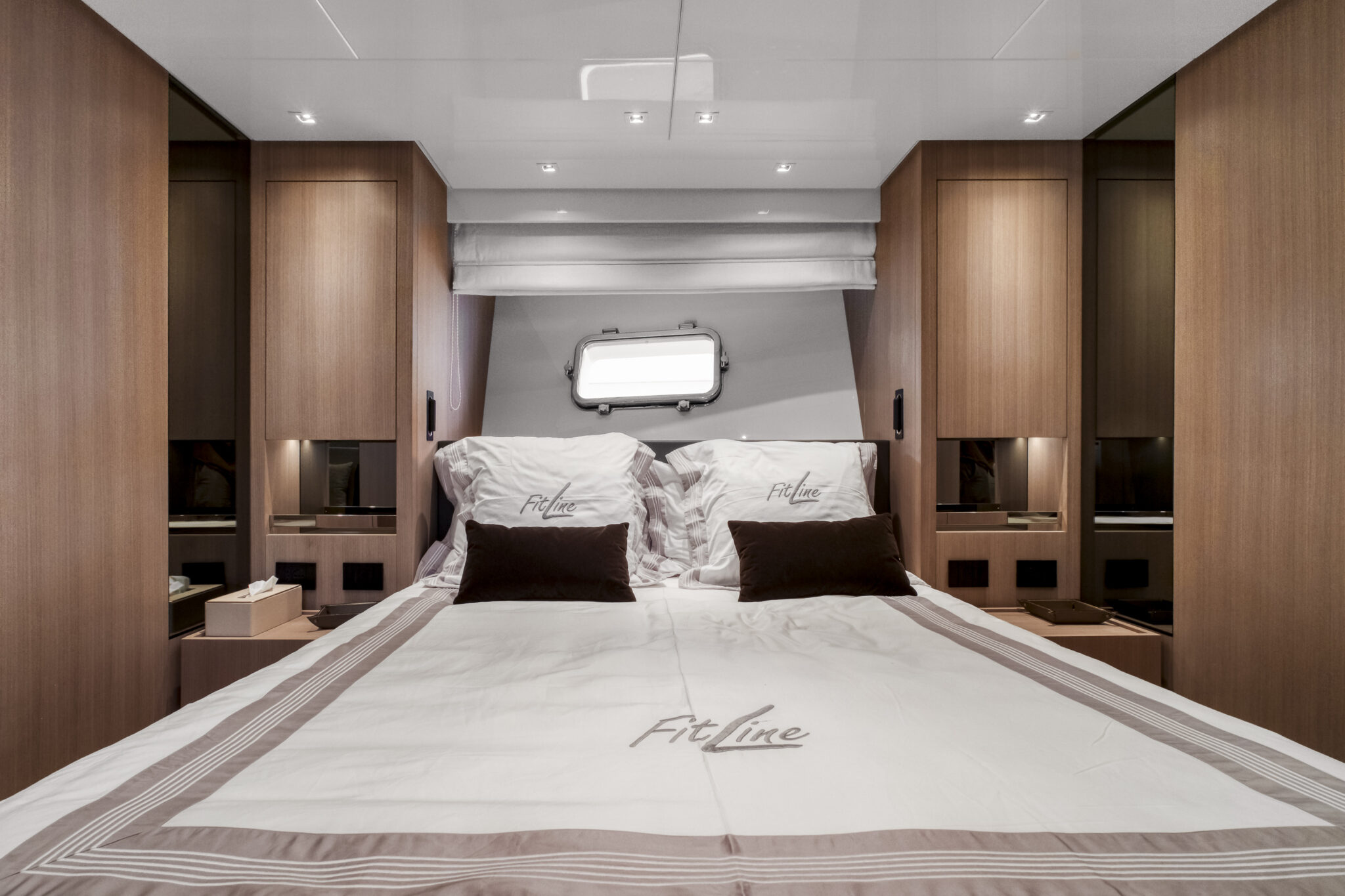 M/Y FITLINE can accommodate up to 8 guests in 4 suites: one master, one VIP, 1 convertible and 1 double. With speeds of up to 22 knots and zero-speed stabilizers, it ensures a smooth and comfortable ride. She is powered by 2 VOLVO PENTA IPS3 1200.