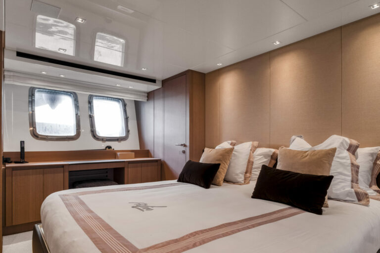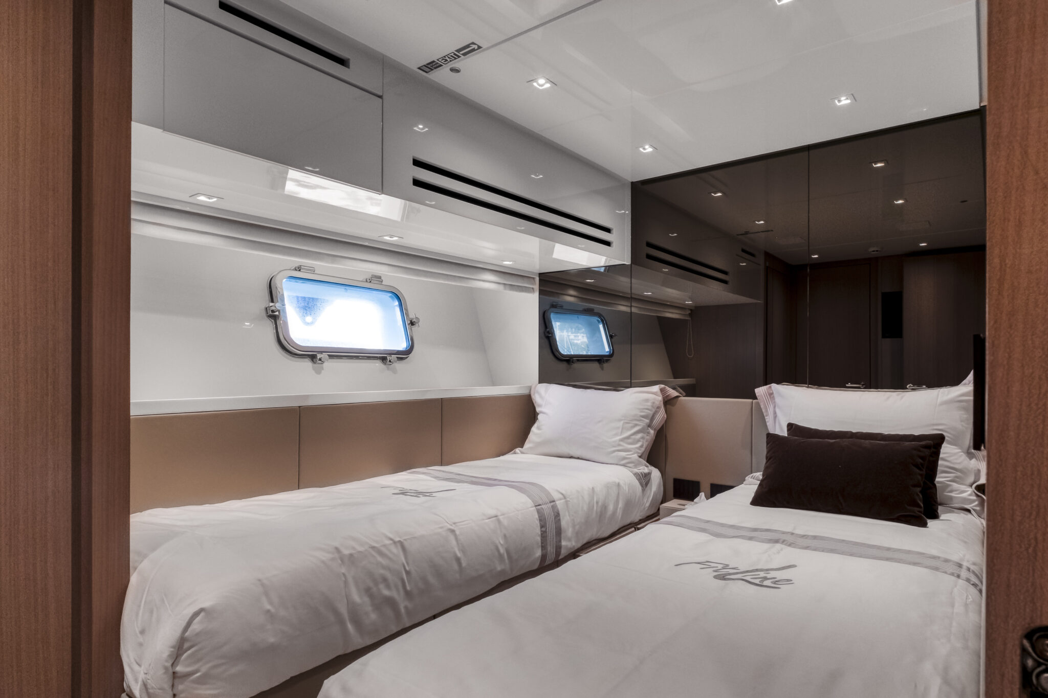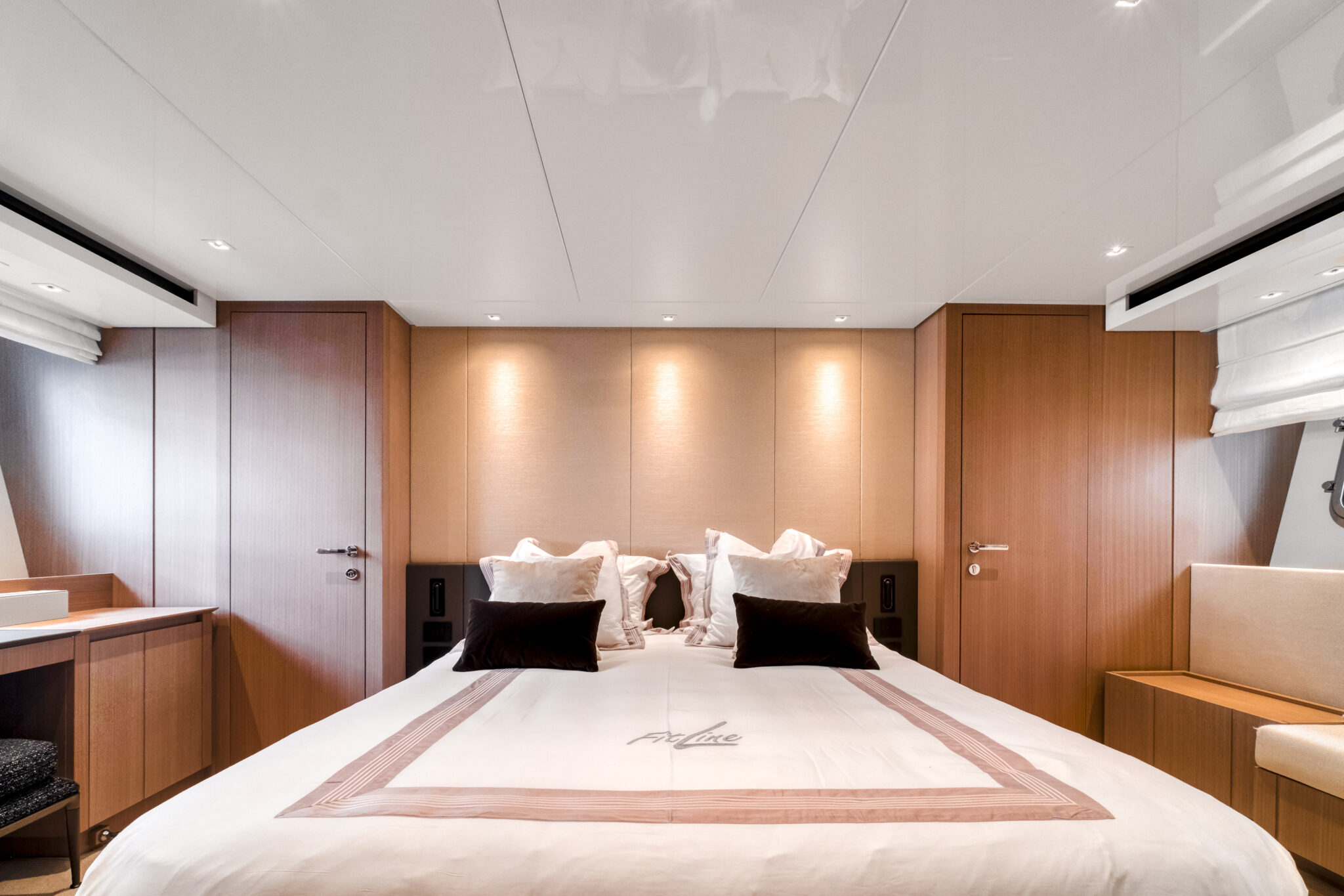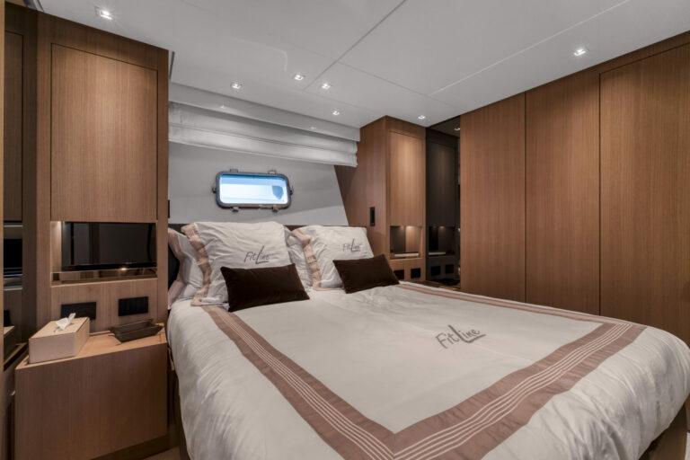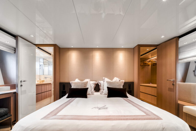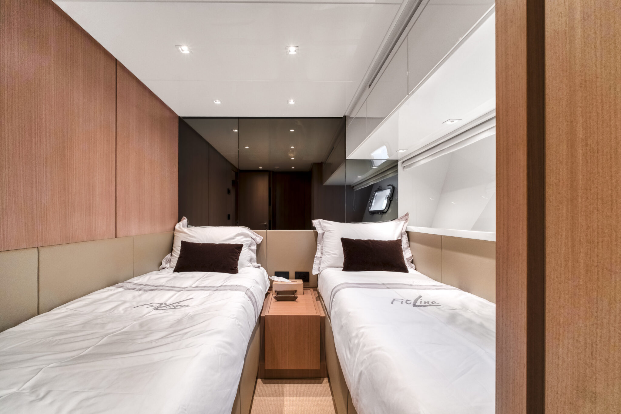 M/Y FITLINE can accommodate up to 8 guests in 4 suites: one master, one VIP, 1 convertible and 1 double. With speeds of up to 22 knots and zero-speed stabilizers, it ensures a smooth and comfortable ride. She is powered by 2 VOLVO PENTA IPS3 1200.