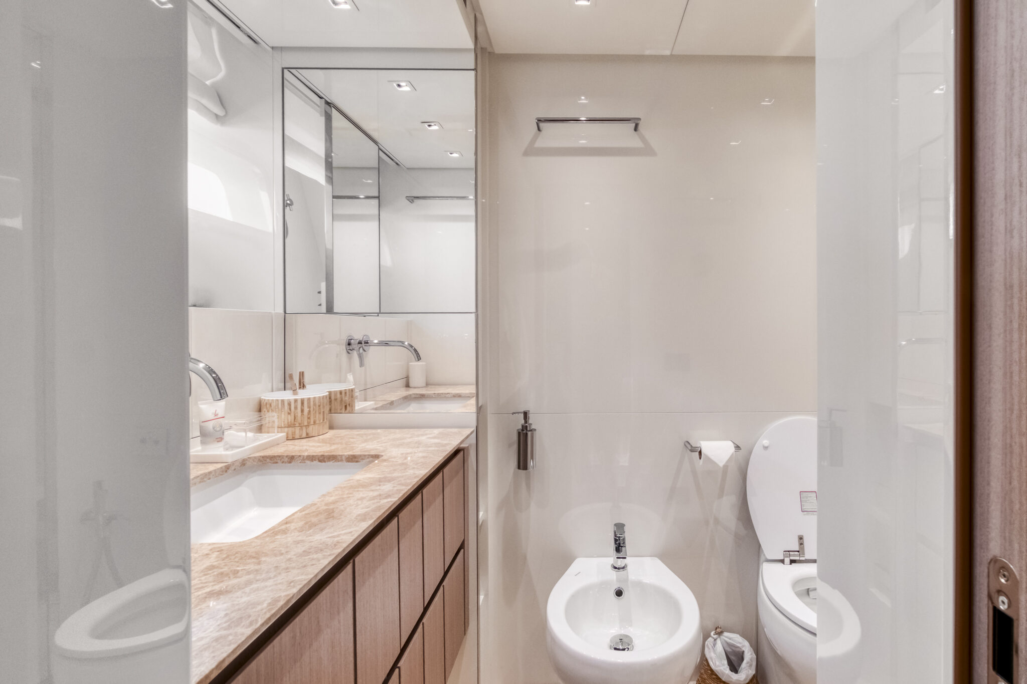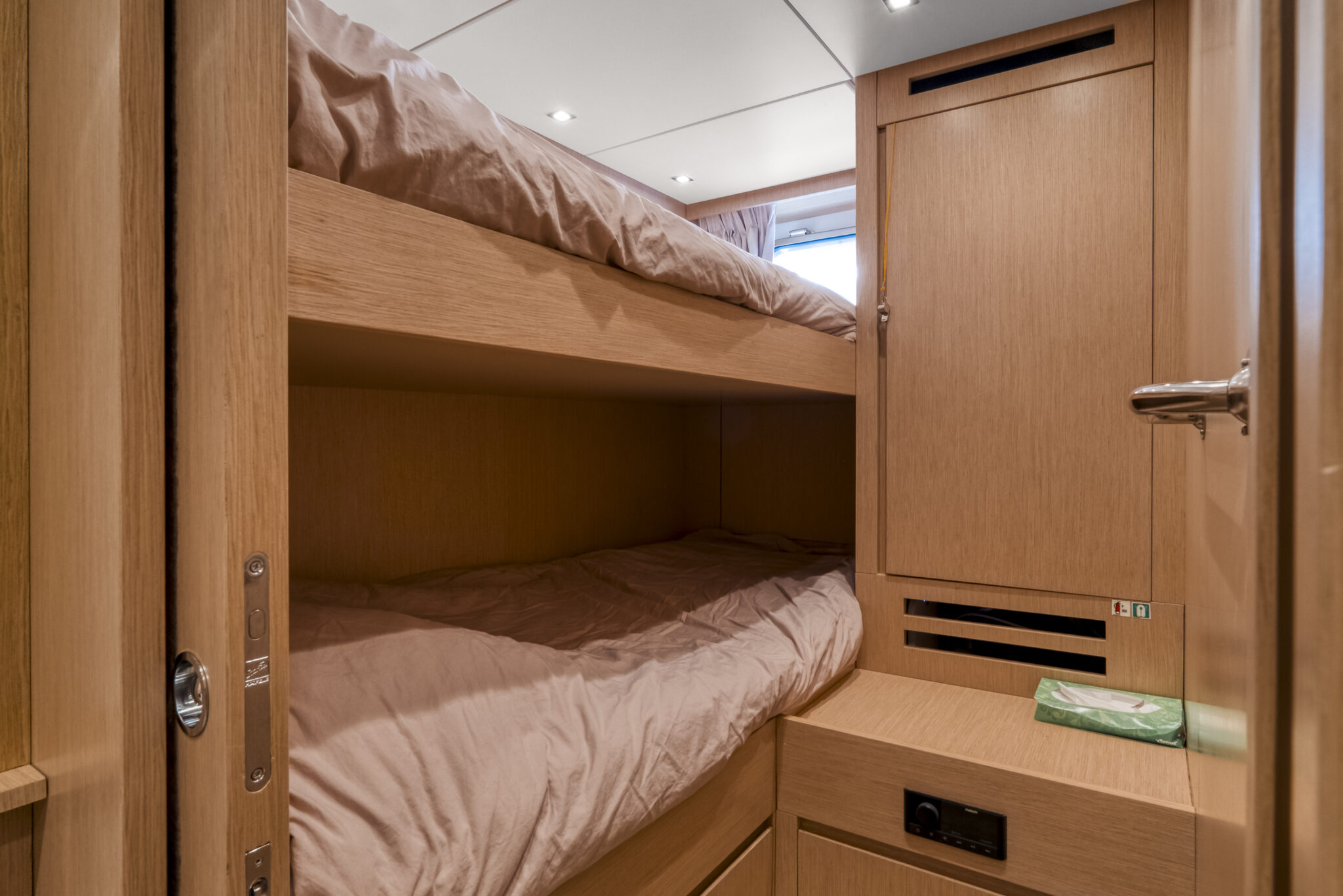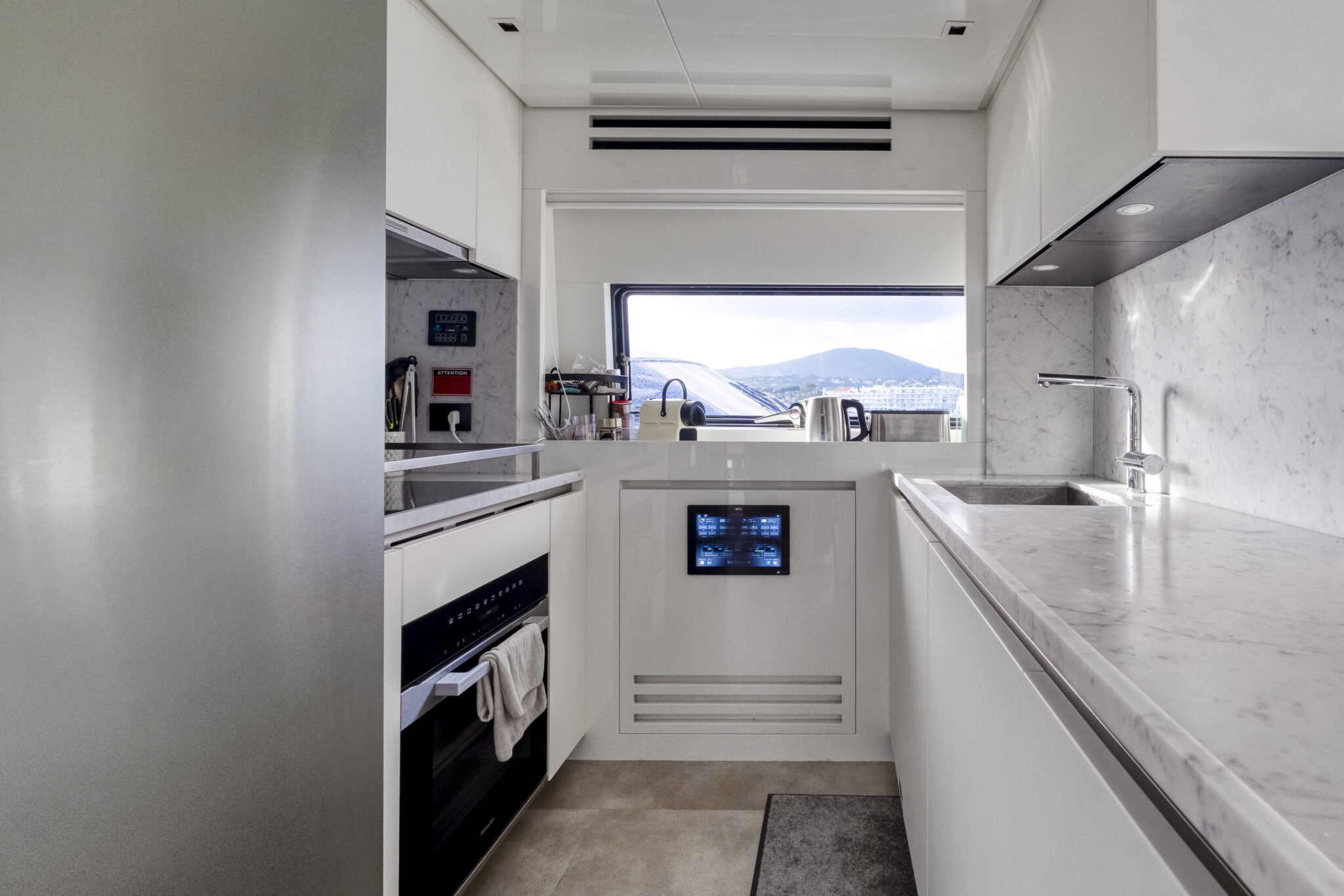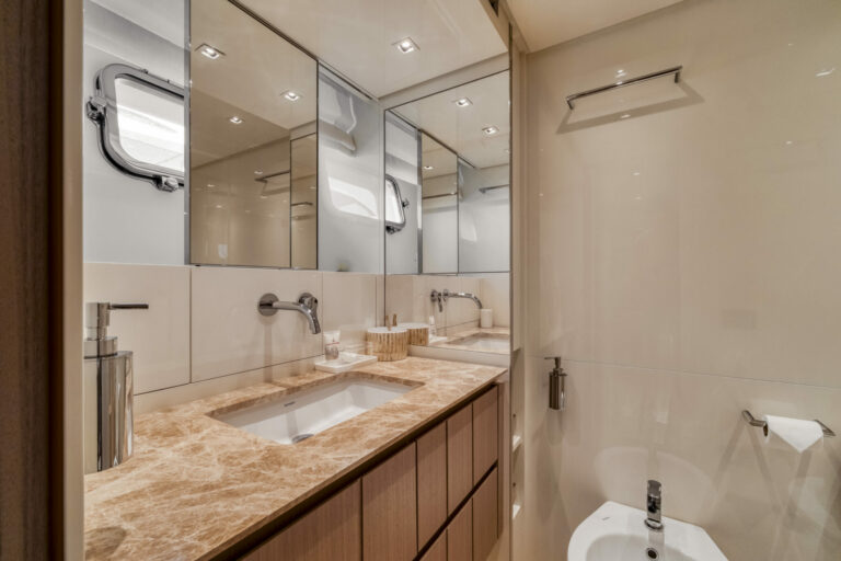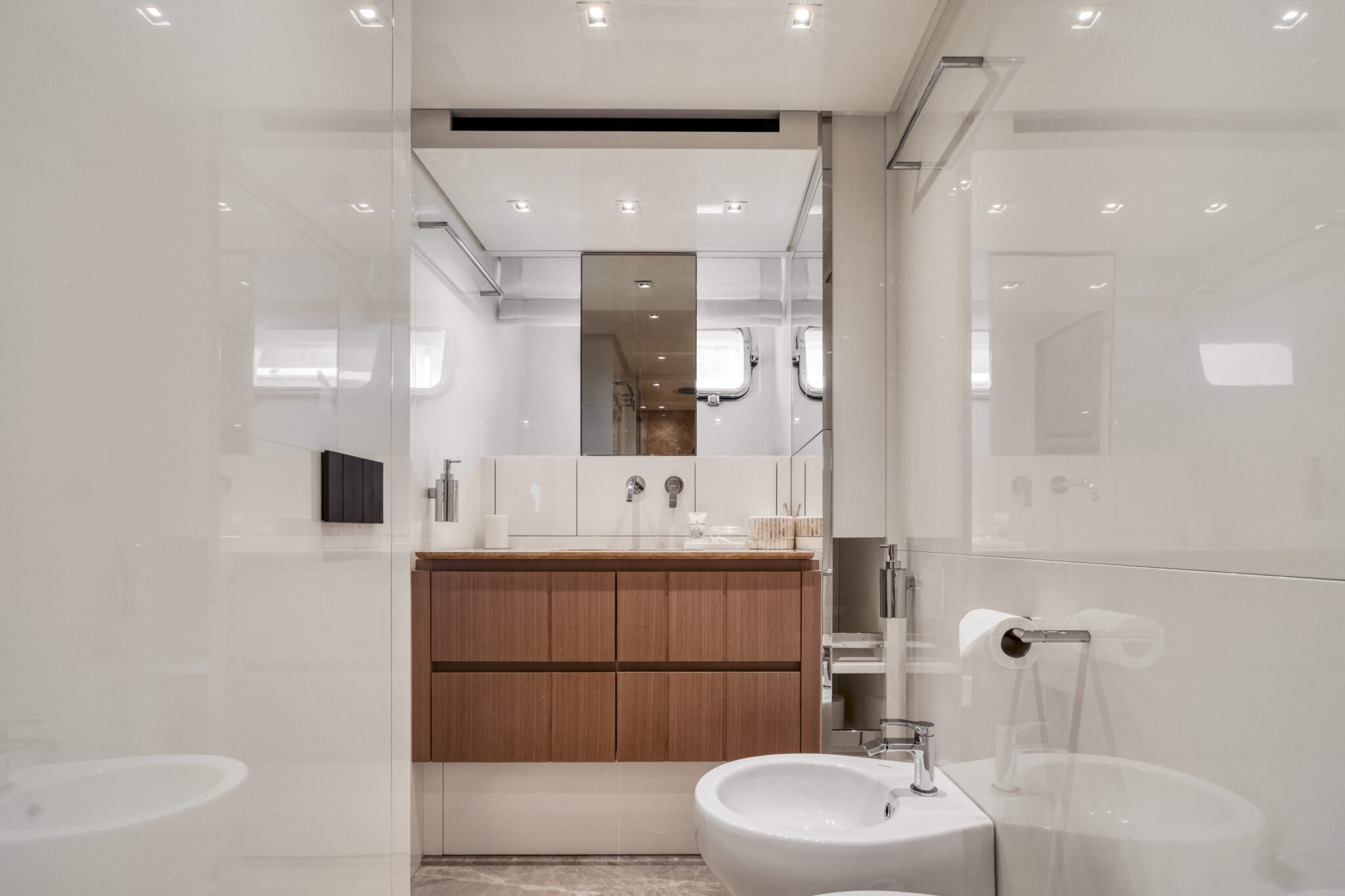 M/Y FITLINE can accommodate up to 8 guests in 4 suites: one master, one VIP, 1 convertible and 1 double. With speeds of up to 22 knots and zero-speed stabilizers, it ensures a smooth and comfortable ride. She is powered by 2 VOLVO PENTA IPS3 1200.