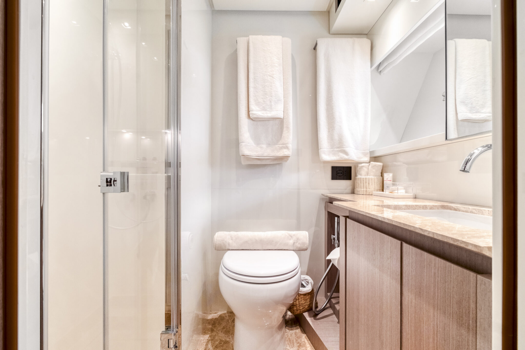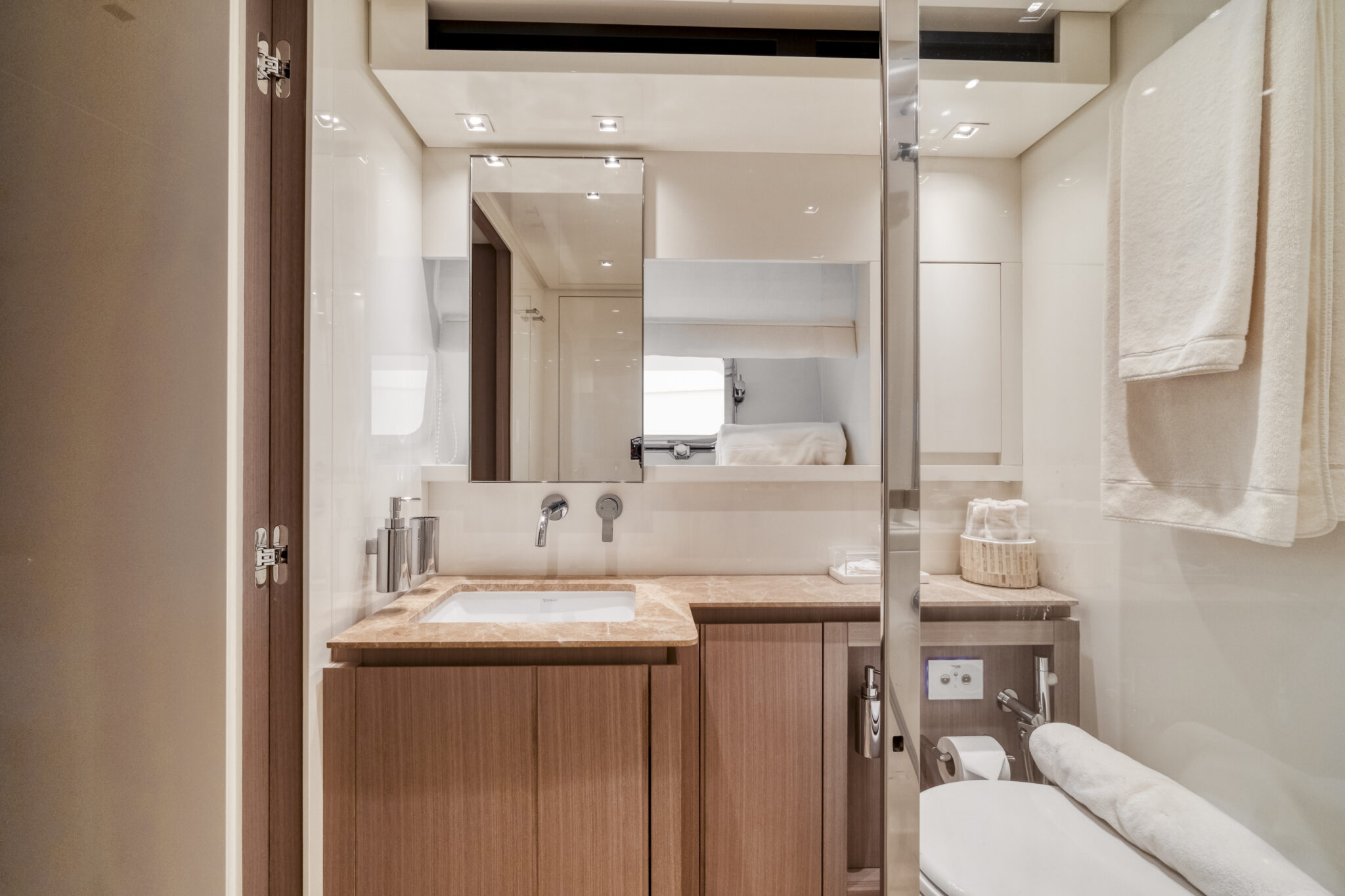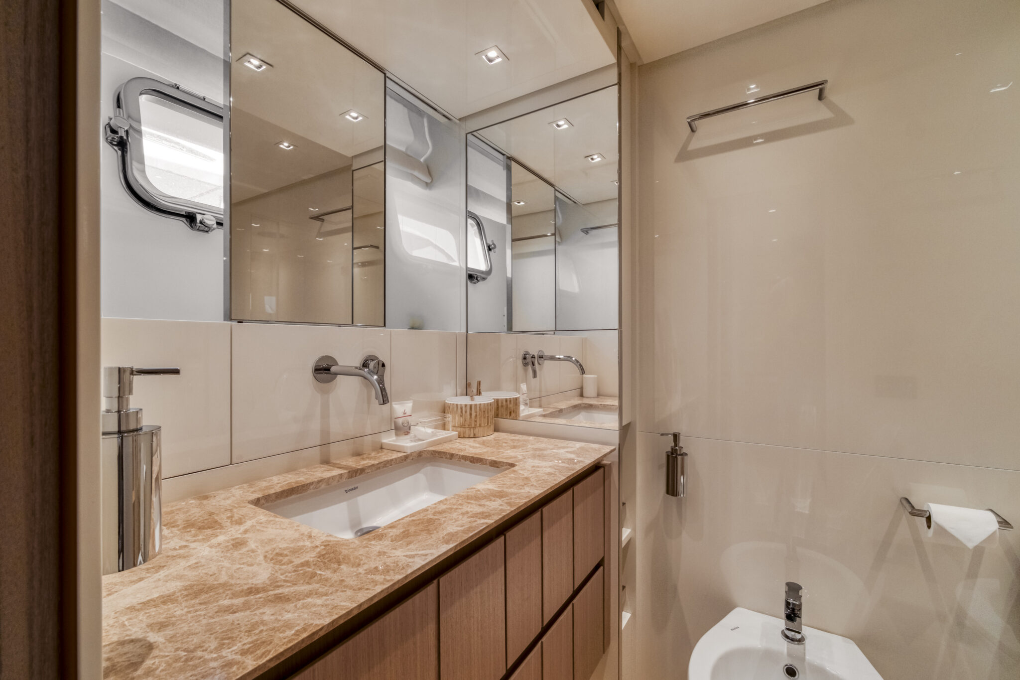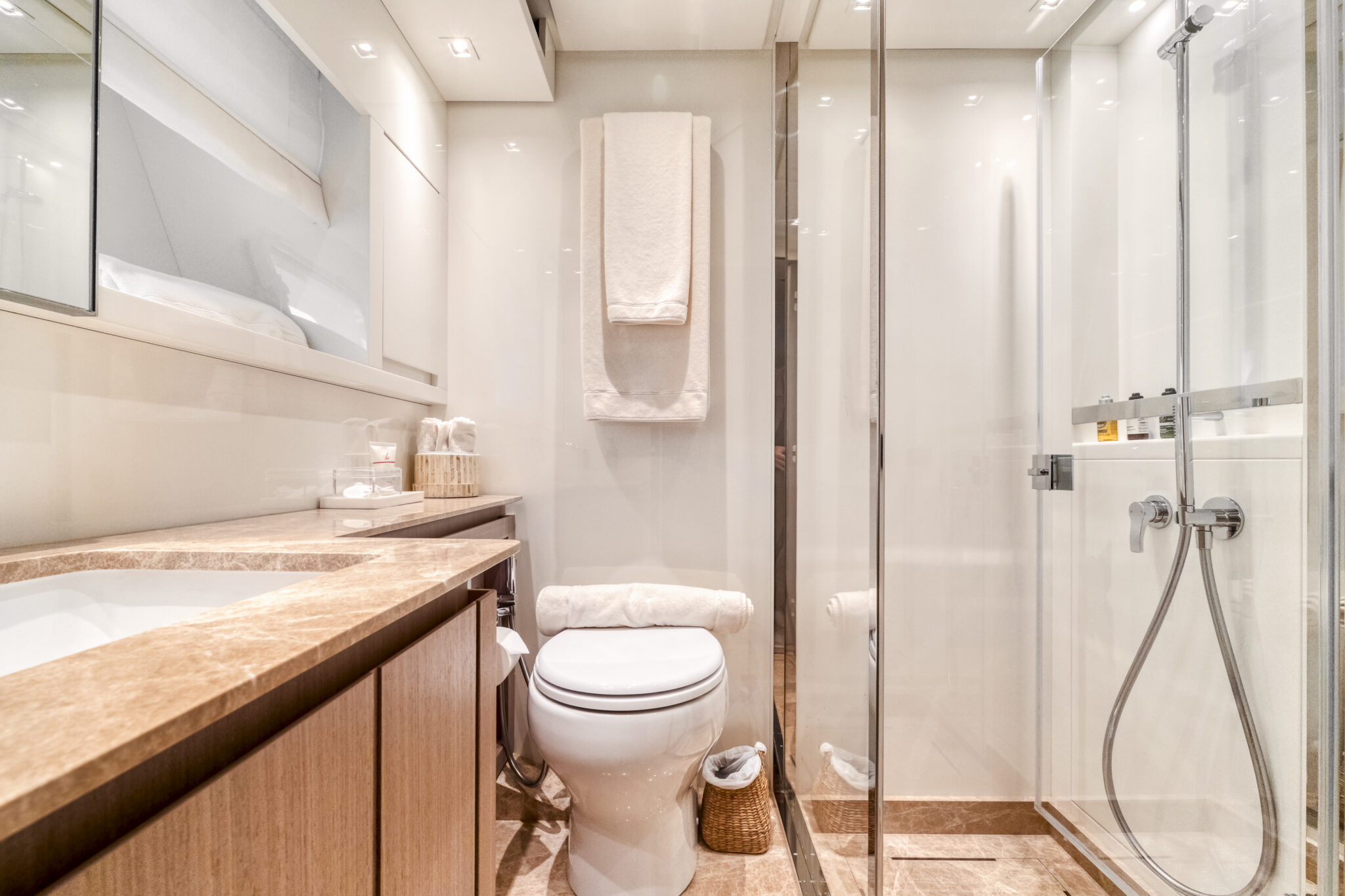 M/Y FITLINE can accommodate up to 8 guests in 4 suites: one master, one VIP, 1 convertible and 1 double. With speeds of up to 22 knots and zero-speed stabilizers, it ensures a smooth and comfortable ride. She is powered by 2 VOLVO PENTA IPS3 1200.